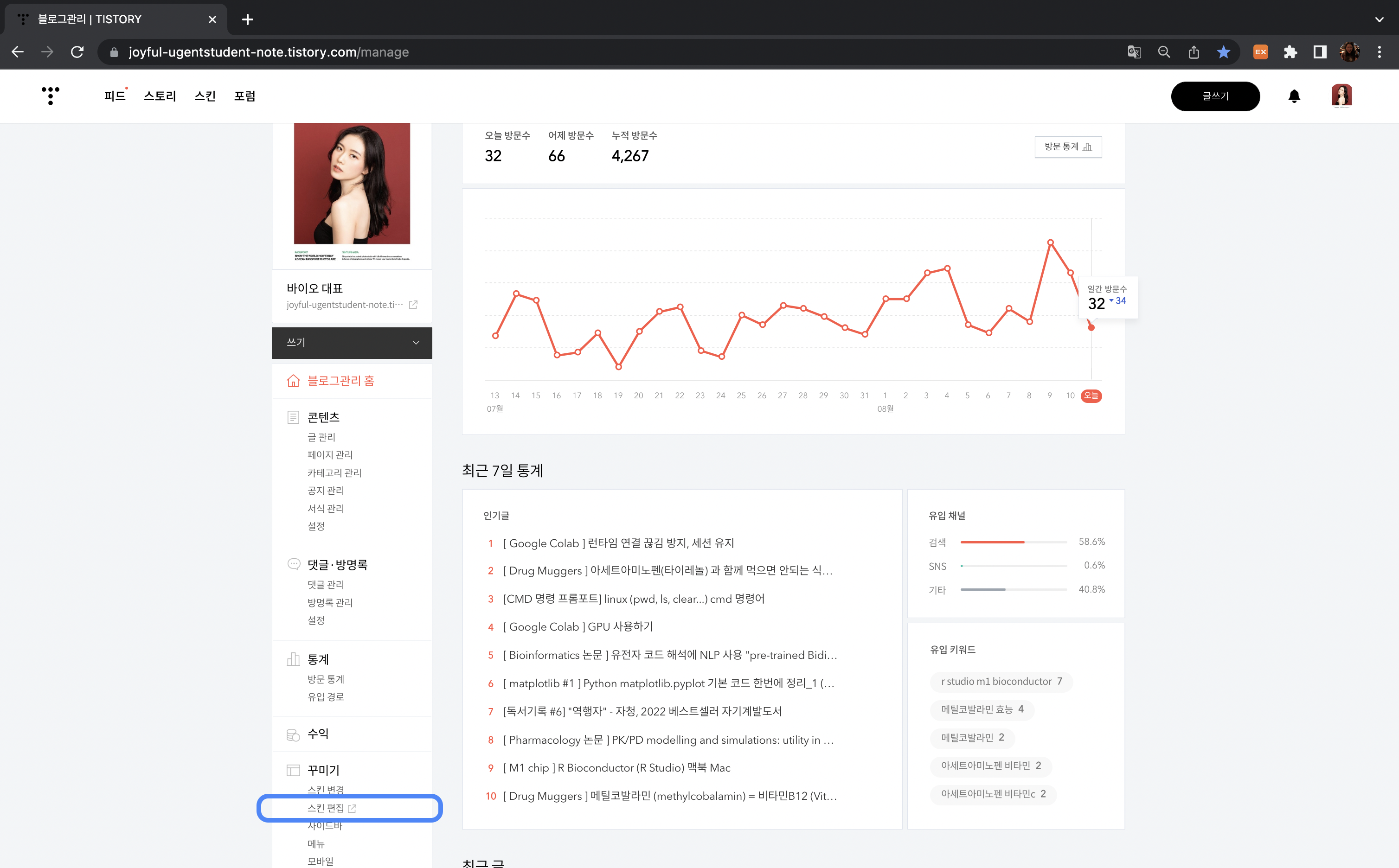 | [ 티스토리 ] 블로그 꾸미기 - 나만의 CSS 스킨공유 (8) | 2022.04.17 |
