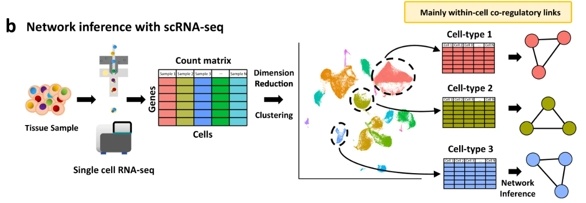 - Bulk RNAseq 에서는 Boolean networks, Bayesian networks, ordinary differential equations (ODEs), information theory, regression, and correlation18,19,20 와 같은 방법이 사용되었습니다.